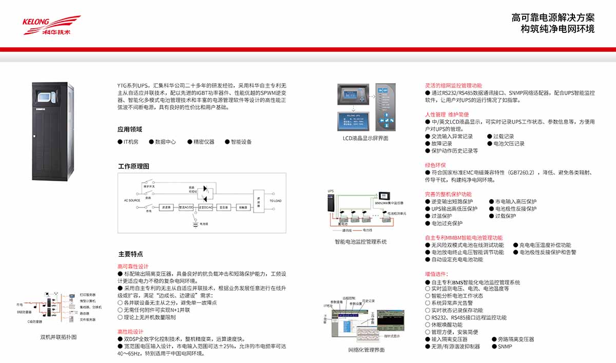 ● 寬范圍電壓輸入設(shè)計,市電輸入范圍可達(dá)±25%,允許的市電頻率可達(dá)40~65Hz,特別適用于中國電網(wǎng)環(huán)境,靈活的組網(wǎng)監(jiān)控管理功能