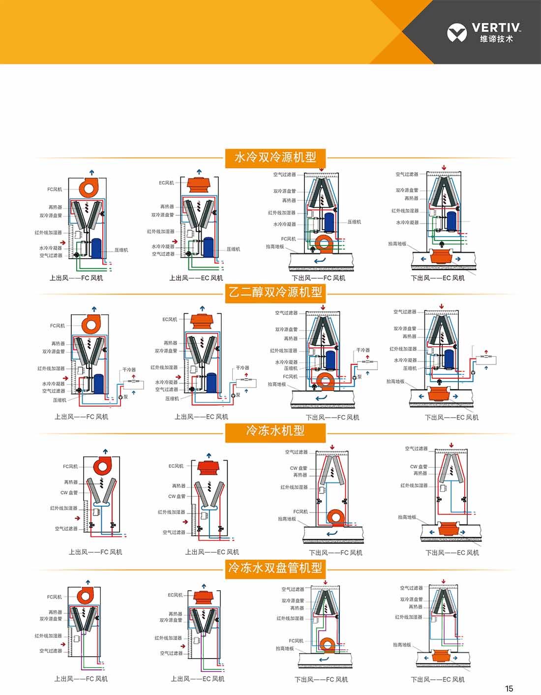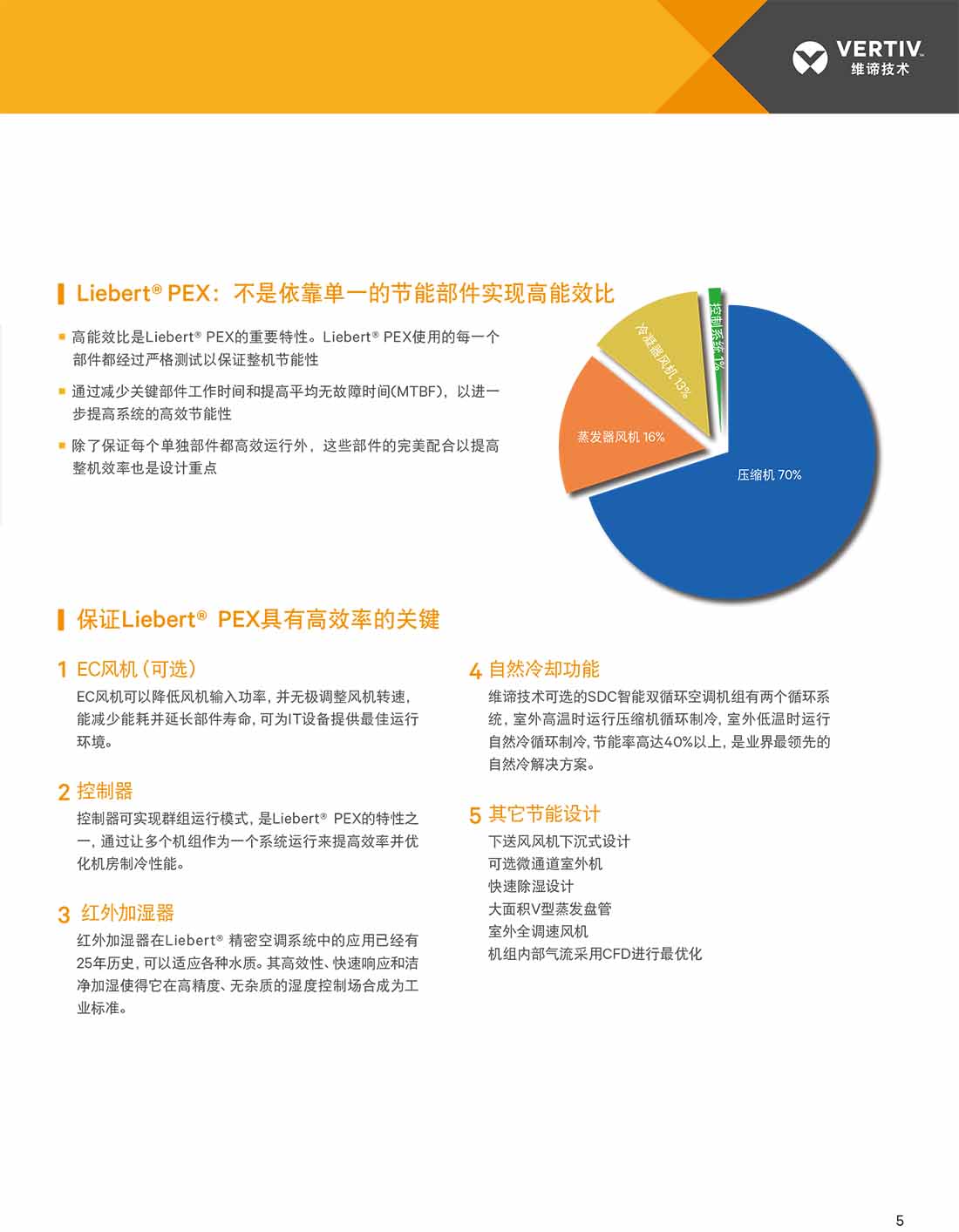 Vertiv Liebert PEX+ 機組是一款全球研發與設計的高端房間級精密空調,針對全球銷售。具有超高效、高可靠性、高靈活性;變容量制冷,優化氣流組織;模塊化設計,安裝運輸更方便。 制冷量范圍寬,風冷、水冷/乙二醇冷機組冷量范圍為:20kW~120kW;冷凍水機組冷量范圍為:30~270kW;具有上送風、下送風等多種送風模式。