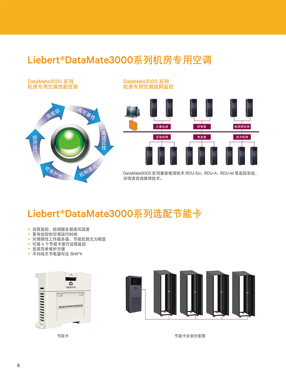 Vertiv Liebert DataMate3000 系列高能效型機(jī)房專用空調(diào)專門針對(duì)高能效需求的場(chǎng)所設(shè)計(jì),比普通機(jī)房空調(diào)進(jìn)一步節(jié)能10%以上。可應(yīng)用于中小型計(jì)算機(jī)機(jī)房、電源室、精密控制室等場(chǎng)所,具有超高能效比、穩(wěn)定、長(zhǎng)壽命運(yùn)行的特點(diǎn),可有效降低機(jī)房的總體擁有成本(TCO)。
